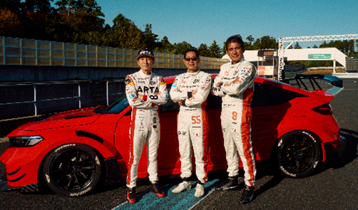 ベース車両にはSUPER GT GT500クラス参戦車両と同様にCIVIC TYPE Rを採用。開発は鈴木亜久里氏と土屋圭市氏が主体となり、デザインとパフォーマンスパーツを厳選。さらに現役ドライバー野尻智紀選手がサーキットで試作車をセットアップし、SUPER GTで培ったノウハウを惜しみなく投入しました。