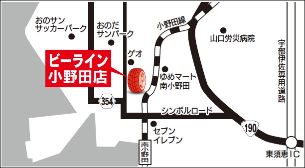 ビーラインは、リーズナブルな価格のタイヤ販売と、スピーディかつ丁寧な交換サービスを提供するタイヤ専業店です。このたびオープンする「ビーライン小野田店」は、JR南小野田駅から北へ約350m、県道354号線沿いに位置しています。