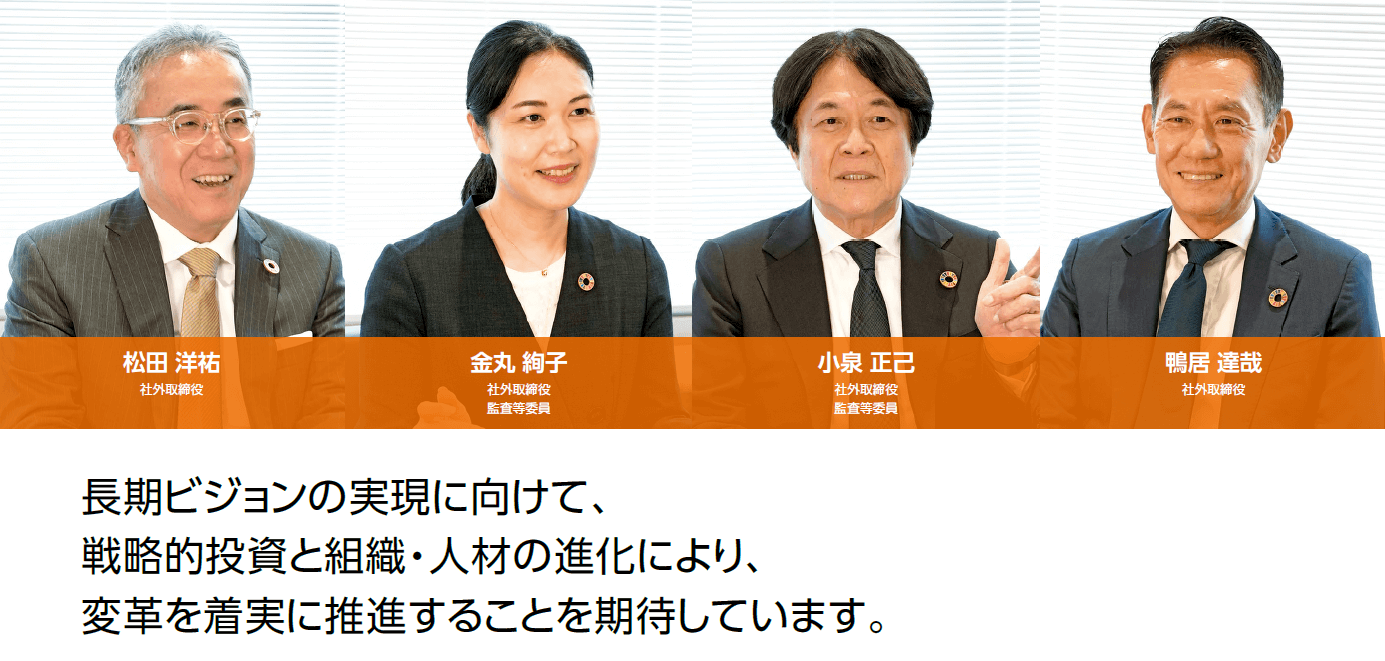 事業の多角化が進む中で、ガバナンスと人材戦略の強化は不可欠です。人材面では、女性管理職比率や育児休業取得率といった定量的な指標に加え、多様な人材が高いエンゲージメントを持って活躍している姿を、外部に向けて積極的に発信してほしいと考えています。