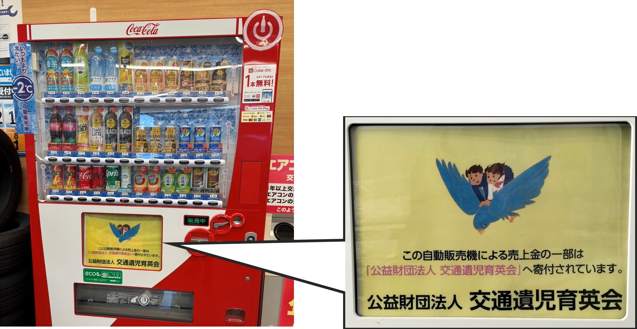 株式会社オートバックスセブン(代表取締役 社長:堀井勇吾)は、連結子会社が運営する全国のオートバックス店舗に、交通事故で保護者を失うなどした子どもたちへの支援団体へ寄付ができるコカ・コーラ社の自動販売機を設置しました。