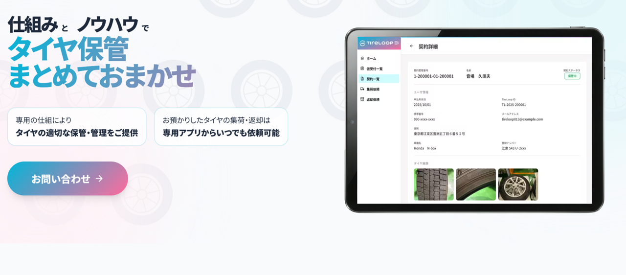 TireLoopは、集荷、保管、返却、契約管理、交換案内までまるごと代行します。取次店が担うのは「契約対応」と「交換作業」のみ。現場負荷が大幅に軽減されます。