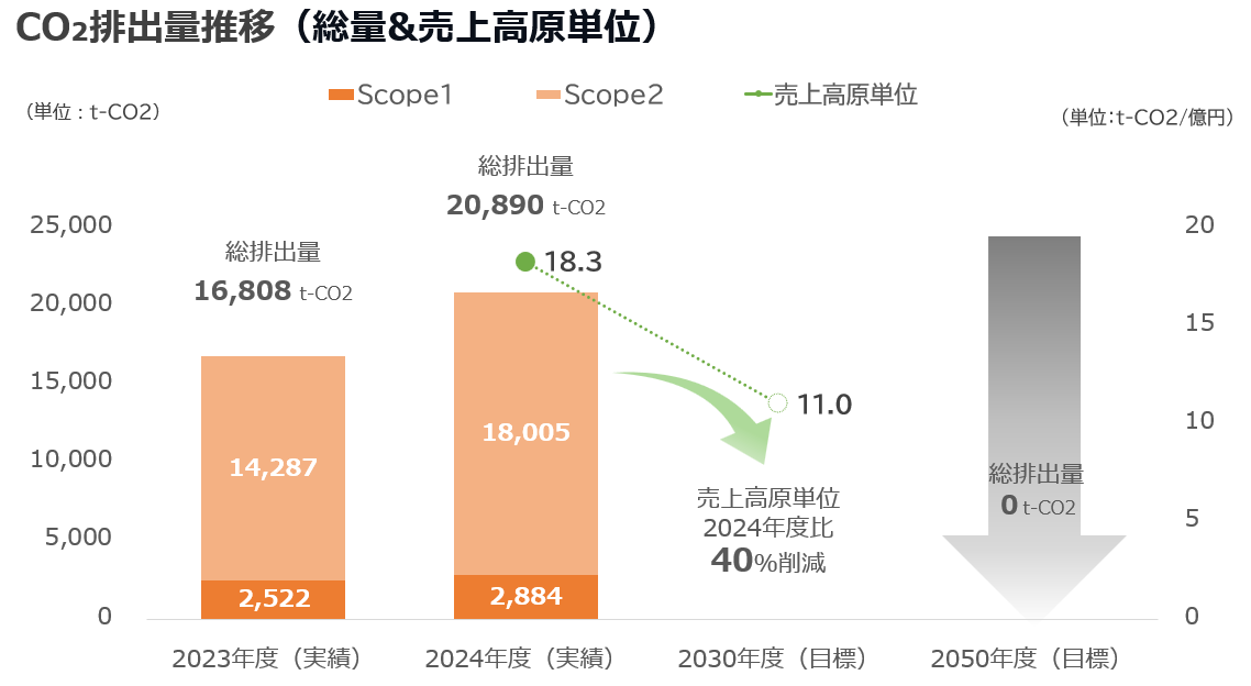 2024年度においては、算出対象範囲を拡大したことにより総排出量が増加いたしました。